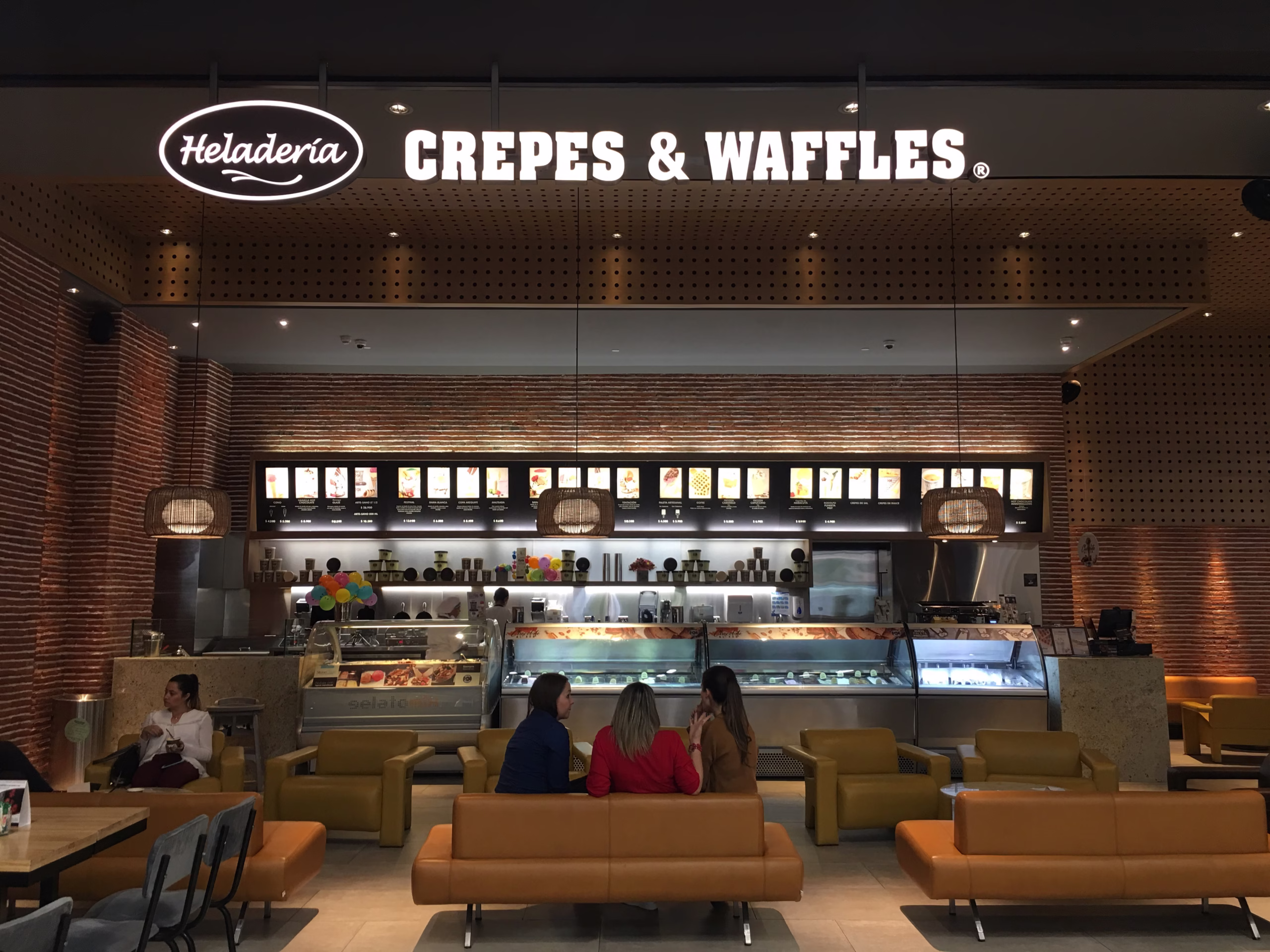 El cliente cuenta con una visión de sus tiendas y una imagen corporativa clara, nosotros somos su aliado para llevar esa visión a una realidad material que cuida su imagen corporativa y busca la perdurabilidad y el fácil mantenimiento. Nuestro enfoque es generar productos perdurables que realcen y llamen la atención del cliente, siempre teniendo en cuenta las normativas de vitrinismo de las ciudades, edificios y centros comerciales donde estén ubicados. Por está razón Crepes & Waffles cuenta con avisos exteriores de cara flexible, cara rígida y letras sueltas, entre otros.