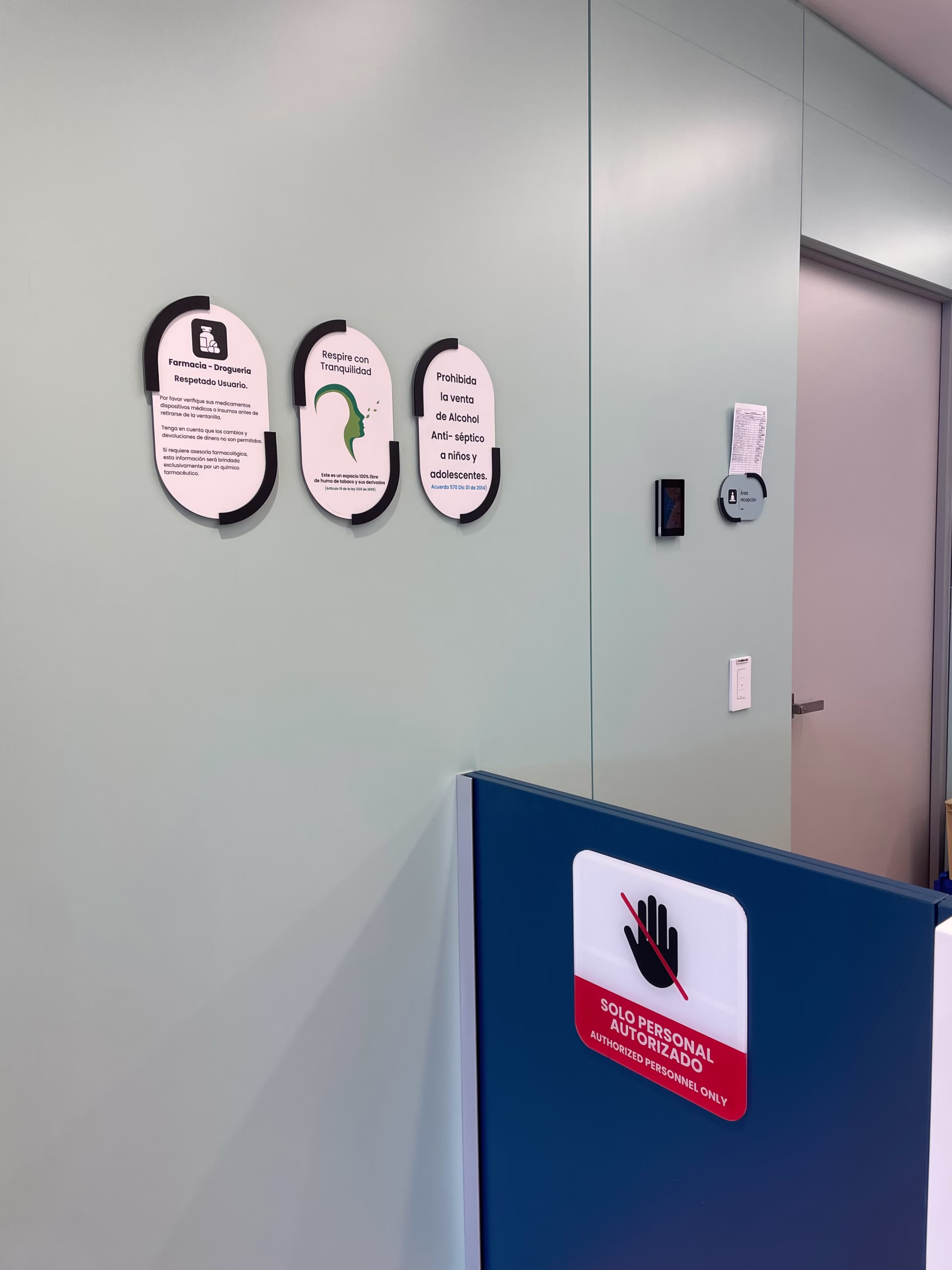 Para las señales que llevan braille (señalización ADA) se utilizó impresiones UV de alto relieve en impresora Mimaki.